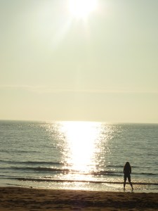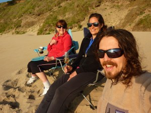 Jane and a bottle of bubbly – Whistling Sands Beach, Llyn Peninsula