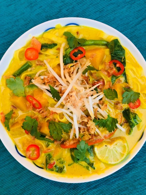 Creamy, spicy, fragrant, loads of colours and flavours, this is my kind of rainbow bowl. Laksa is a stunning combination of very tasty things, the perfect re-vitalising, comfort food we need in the winter time. We’ll cook with seasonal vegetables and giving them a exotic, Malaysian twist, this laksa bowl really lights up any table or meal time.