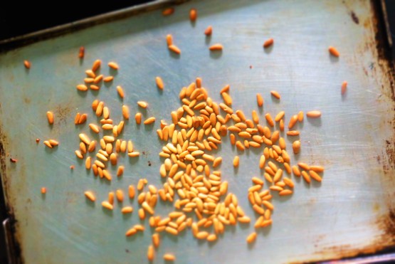 Add your peelings and herbs to the pan, stir a little so they don’t stick. Don’t overload the pan. Fry into batches if needed.