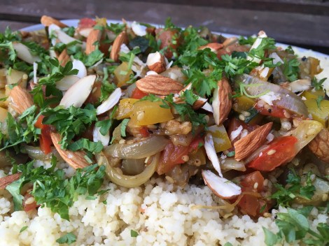 Use any vegetables you like here, whatever is seasonal and looking top banana. I really enjoyed the squash, we have hardly been going out shopping, so this squash was really appreciated. I prefer it to carrot in a curry. Jane prefers carrot. We’ll agree to disagree there. I love the way squash just breaks down. I left the skin on here, I wanted to cook it well, but not for it to break down into the sauce too much. This whole meal was prepared with no oil, the good fats coming mainly from the peanut butter in the masala.